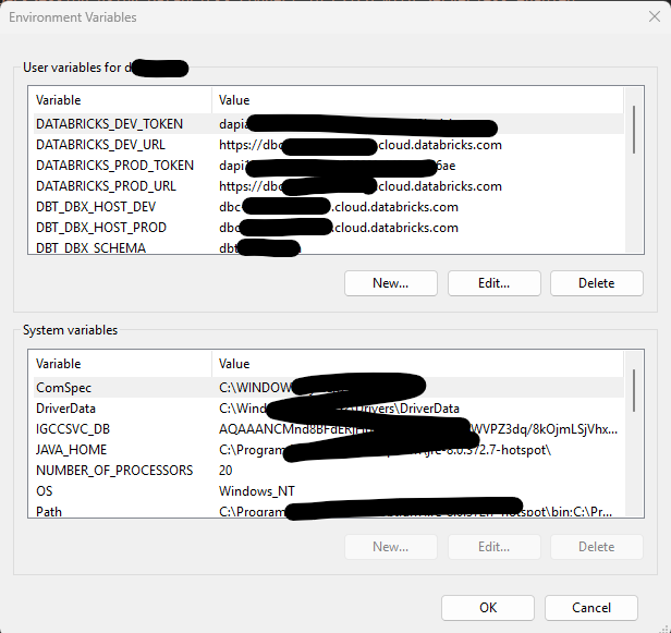 <your_username>", click "New" (or edit existing ones).Add the following variables with the correct values: