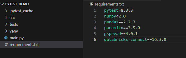 The first step is to add a requirements.txt file. This file is not necessarily used while developing on your local machine but is executed during the Continuous Integration (CI) process. When unit tests run in CI, the dependencies listed in requirements.txt will be downloaded and installed on the GitHub Runner machine.